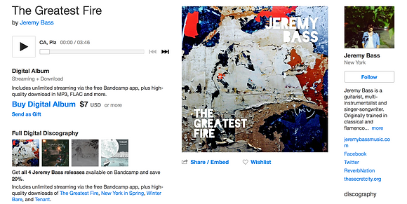A love of storytelling, evocative lyrics and lush imagery characterize Jeremy's first solo work. Recorded and mixed by producer Matthew Vitti of MotherBrother Studios, Tenant features the bass playing of Pete Griffin (Young Beautiful In A Hurry, Zappa Plays Zappa), the keyboard skills of composer Aaron Kotler, strings from members of Silouette Quartet, as well as a backing array of mandolin, banjo, and lap steel guitars.